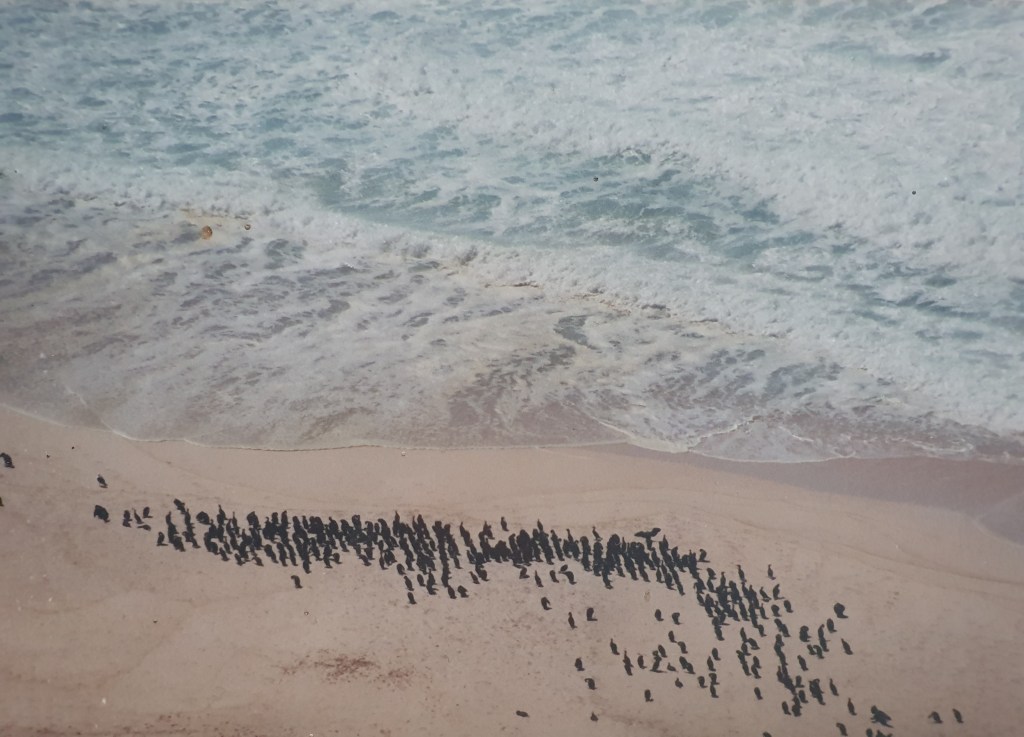 (non loin du cap des Aiguilles que l’on considère comme point de passage officiel entre l’Océan Atlantique et l’Océan Indien, même si ce point peut varier selon les fantaisies saisonnières du courant des Aiguilles et de celui de Benguela)