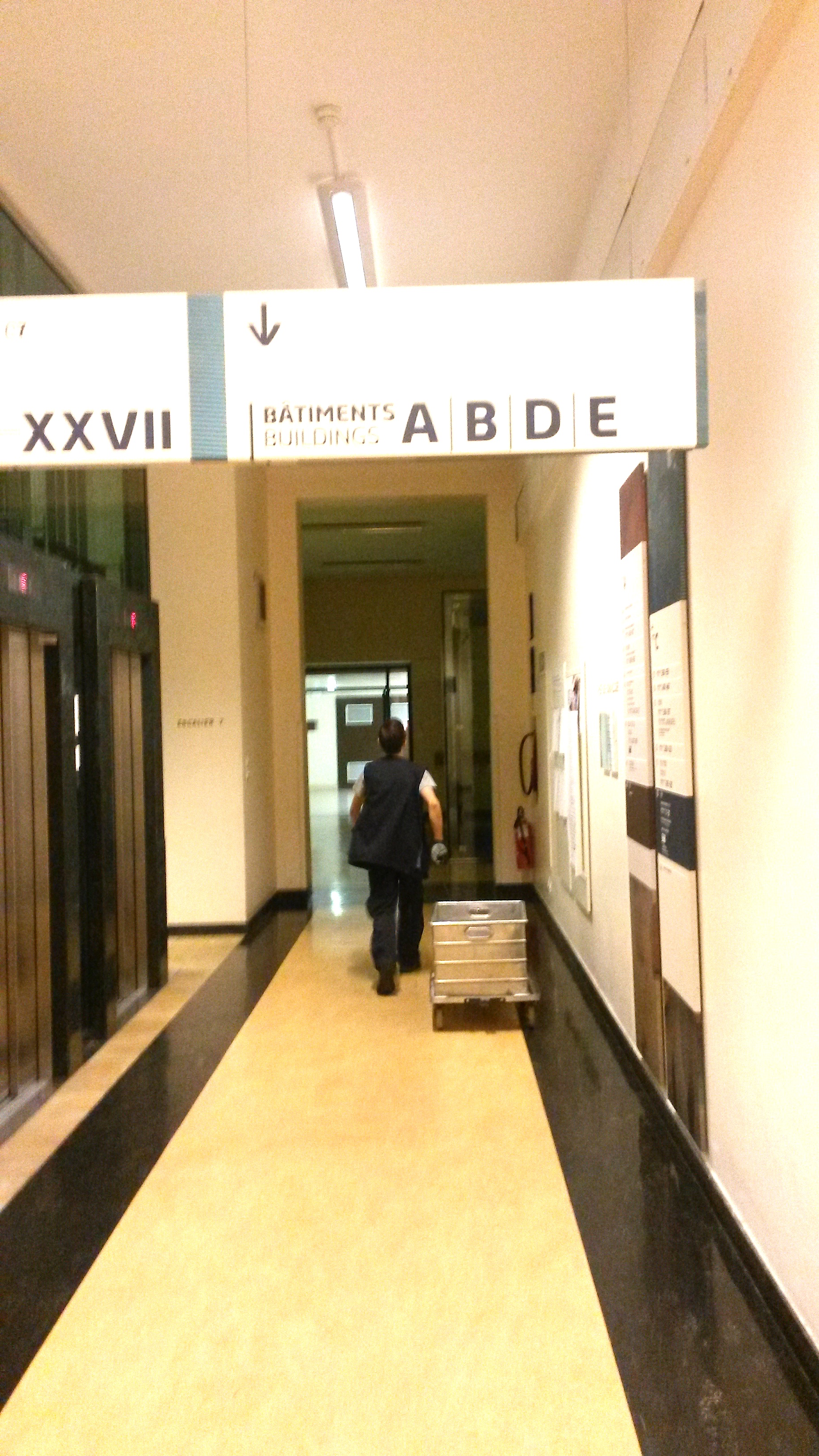 Selon un itinéraire culturel qu’on nous a recommandé, nous suivons les chouettes, petits symboles en laiton sur les trottoirs : le parcours est long et fastidieux, nous emmène loin du centre et ne nous émerveille pas. Où sont les beaux hôtels particuliers, les maisons à colombages, chapelles, les abbayes, les celliers ? Nous en attrapons quelques-uns au vol mais ne nous sentons pas « pris en main » ni orientés par ce parcours. Pourtant, Dijon regorge de bâtiments historiques – que je découvrirai plus tard sur internet. Sans doute fait-il gris et sommes-nous un peu fatigués… Sans doute, c’est dimanche, et le seul quartier animé est celui, un peu glauque, de la gare… Un parfum de désolation, d’abandon règne. Les aménagements place de la Gare et place de la Libération sont à nos yeux des chefs d’œuvre d’architecture urbaine ratée et, loin de mettre en valeur les monuments historiques, semblent vouloir les occulter.